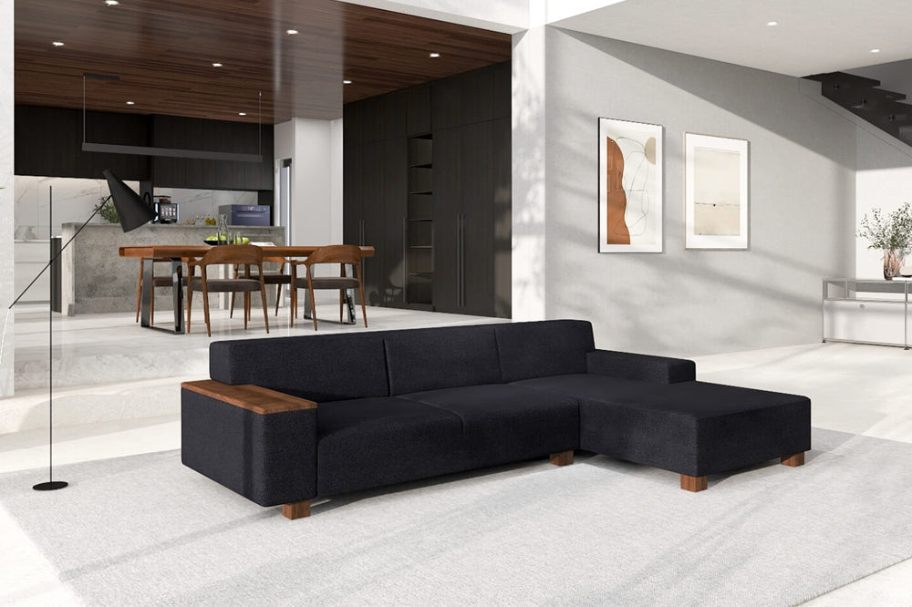 BRICKは肘にウォールナット、オークの天然木を取り付けすることができます。無垢材の表情が、お部屋の木工家具と相性良く、より統一感が増すことでしょう。肘幅が230mmと広いため、サイドテーブルとしても。天然木のため一つ一つに個性があり、ソファと共に経年変化を感じられる味わい深い木肘です。