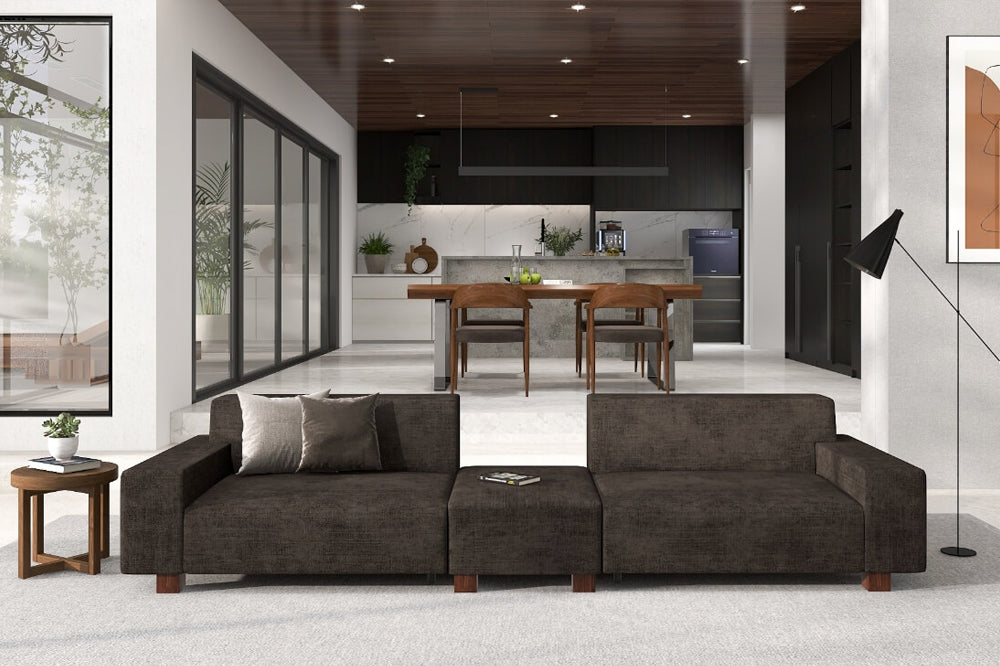 全体が低く設計され、重厚感が溢れるスタイリッシュなローソファ。フラットでシンプルなため、豊かな存在感はありながらも圧迫感がなく、お部屋を広く魅せます。